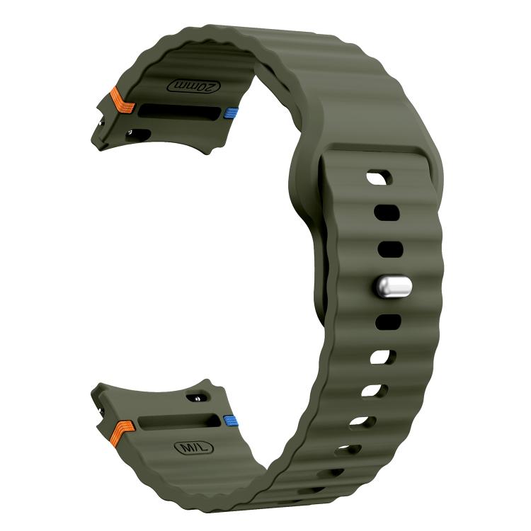 Correa de silicona para Samsung Galaxy Watch 7 (40 mm/44 mm), con costuras onduladas y hebilla invertida de 20 mm (verde militar)