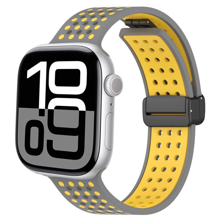 Correa de silicona transpirable con hebilla magnética para Apple Watch de 42 mm, 41 mm, 40 mm y 38 mm (gris y amarillo)