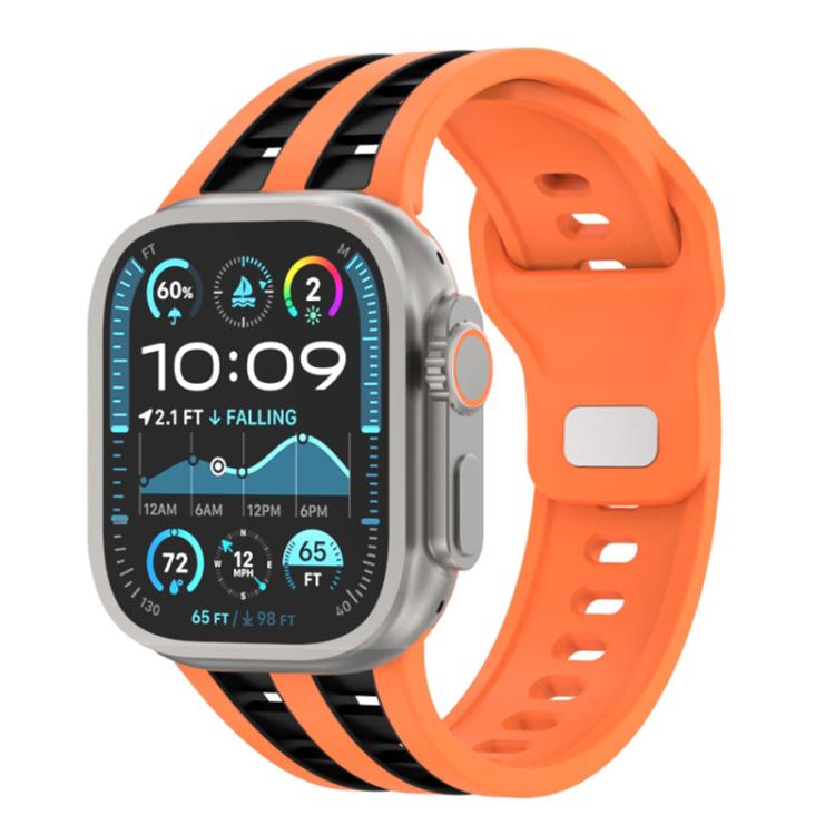 Correa de silicona transpirable de doble fila para Apple Watch de 46 mm, 49 mm, 45 mm y 44 mm (naranja y negro)
