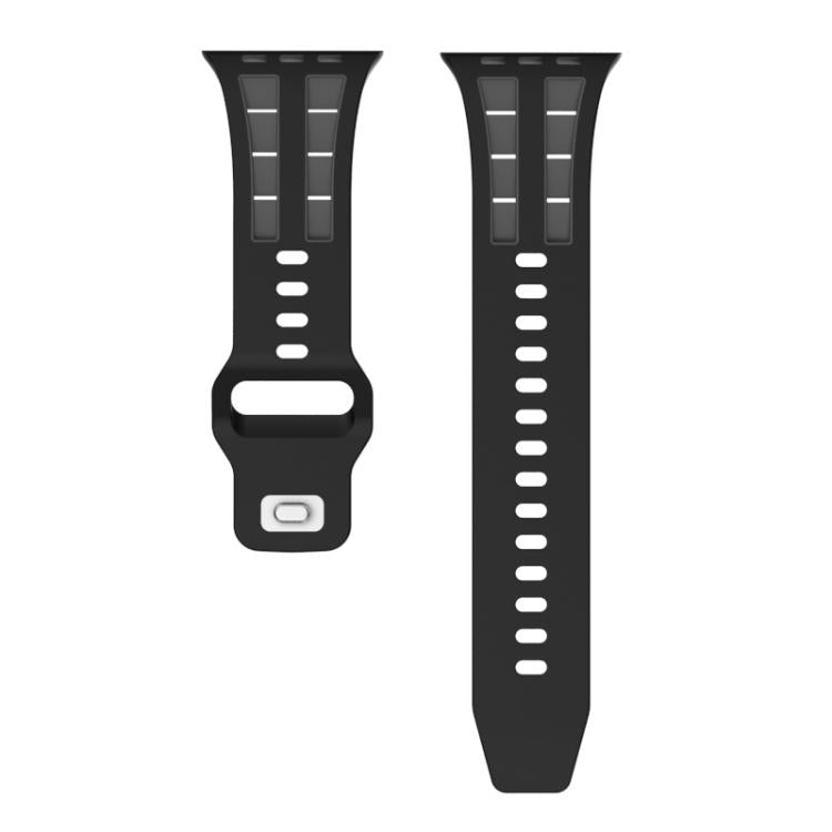 Correa de silicona transpirable de doble fila para Apple Watch de 46 mm, 49 mm, 45 mm y 44 mm (negro y gris)