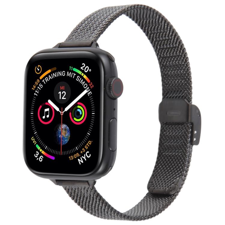 Correa fina de metal milanés con hebilla integrada en relieve para Apple Watch de 42 mm, 41 mm, 40 mm y 38 mm (negra)