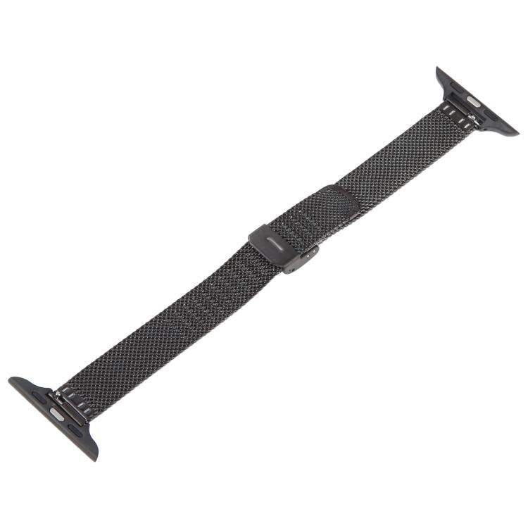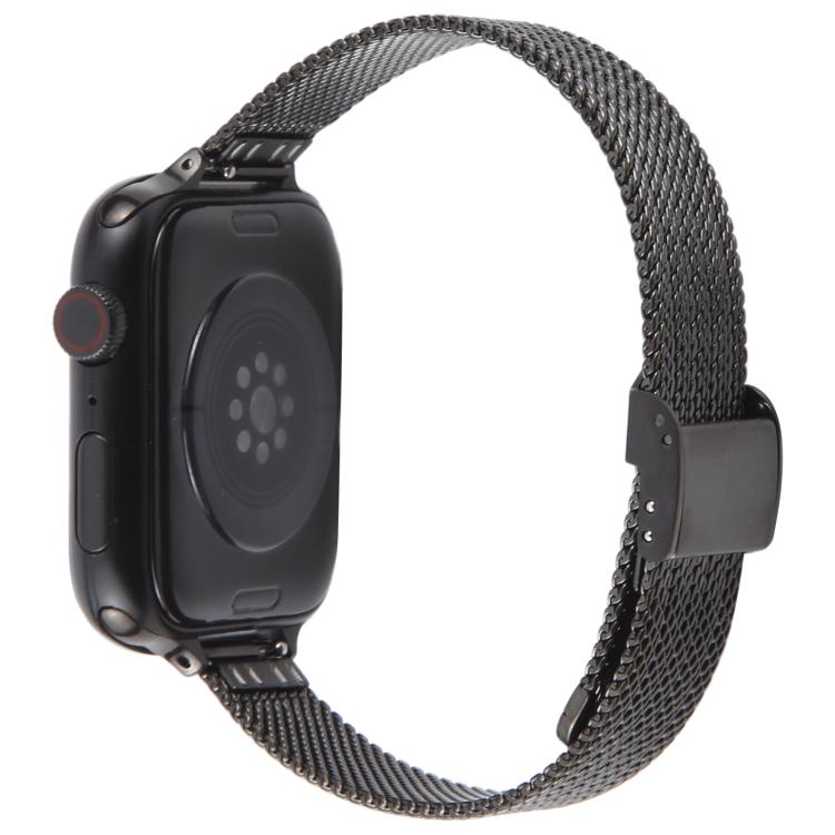 Correa fina de metal milanés con hebilla integrada en relieve para Apple Watch de 46 mm, 49 mm, 45 mm y 44 mm (negra)