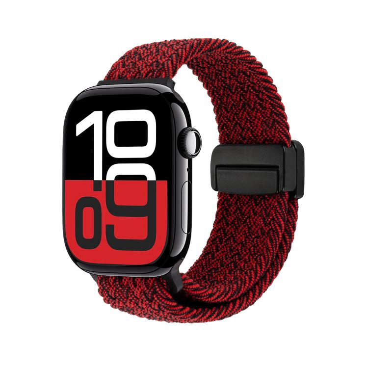 Correa tejida con hebilla magnética para Apple Watch de 46 mm, 49 mm, 45 mm y 44 mm (negro, rojo limo)
