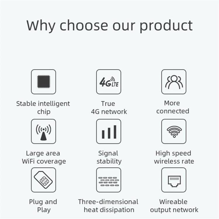 3. Fácil configuración: Simplemente inserte una tarjeta SIM estándar para convertir 4G LTE en un punto de acceso Wi-Fi.Requiere una configuración mínima para acceder a internet al instante en todos los dispositivos, apto para usuarios de todos los niveles técnicos.4. Compatibilidad con múltiples dispositivos: Conecte hasta 32 dispositivos simultáneamente, incluyendo smartphones, tablets y PC, con una cobertura máxima de 300 metros cuadrados.