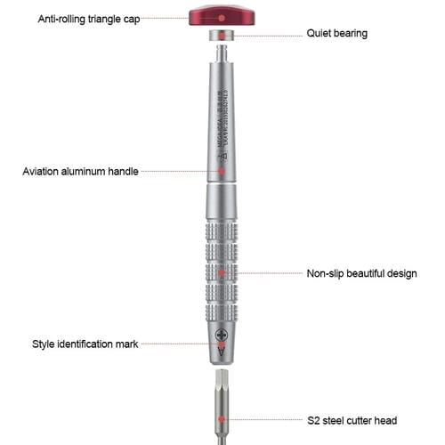 El destornillador de precisión S2 Phillips está diseñado para la reparación profesional de Teléfonos Móviles y otros pequeños dispositivos electrónicos. Su modelo compacto y Portátil facilita el uso en trabajos técnicos que requieren exactitud y control, especialmente en la manipulación de tornillos Phillips de tamaño reducido. Fabricado con acero S2, este destornillador ofrece durabilidad y resistencia para soportar el uso frecuente en entornos de reparación. Es compatible con una amplia gama de dispositivos electrónicos, incluyendo Teléfonos inteligentes, juguetes y gadgets pequeños, proporcionando una herramienta esencial para usuarios que reparan por cuenta propia y técnicos especializados.
