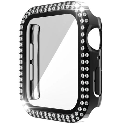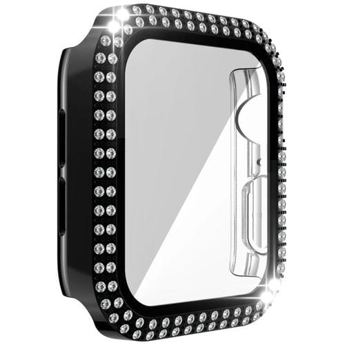 Funda de Reloj + Vidrio Templado Diamante PC para Apple Watch Series 6 SE 5 4 44mm (Negro)