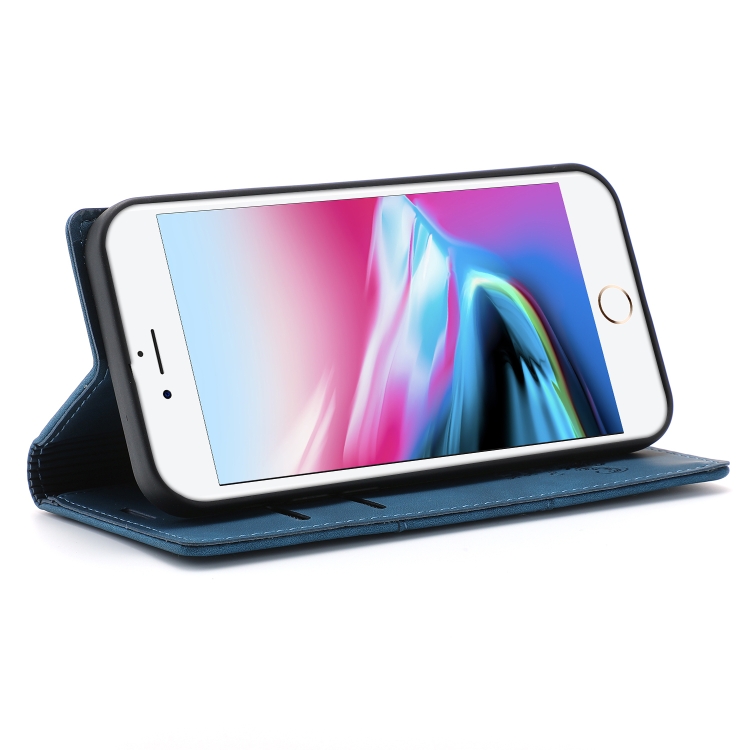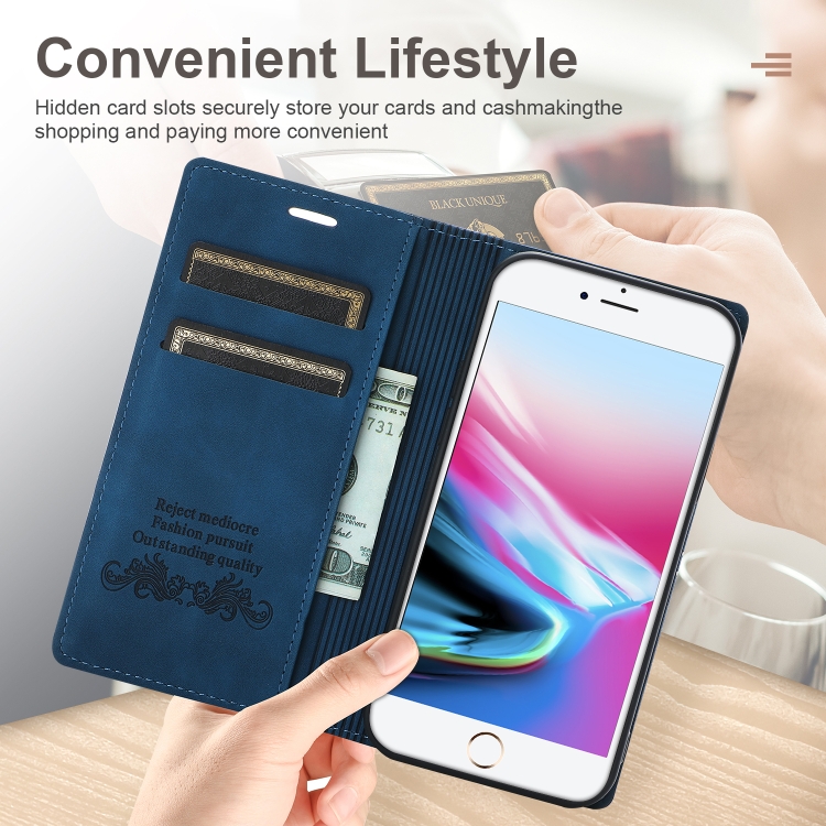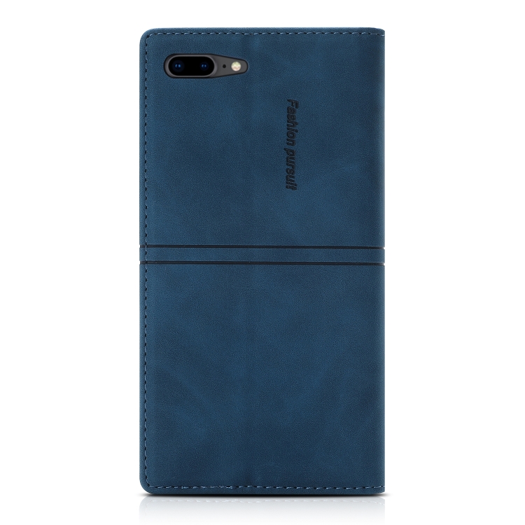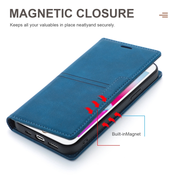 Caja de Cuero Flip Horizontal con Succión Magnética Soporte Ranura Tarjeta Billetera para iPhone 8 Plus / 7 Plus (Azul)