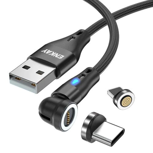 Cable USB A Tipo-C Enkay 3A Carga Rápida Giratorio 540° Magnético 8 Pines (Negro) 2 M