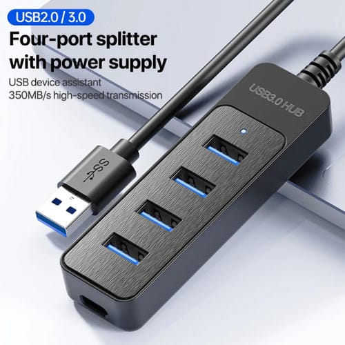 • Fuente de Alimentación tipo C, 4 Puertos USB 3.0 con velocidad de transmisión hasta 350 MB/s, núcleo de cobre estañado para estabilidad y antiinterferencias, Soporte para discos duros externos de hasta 12 TB