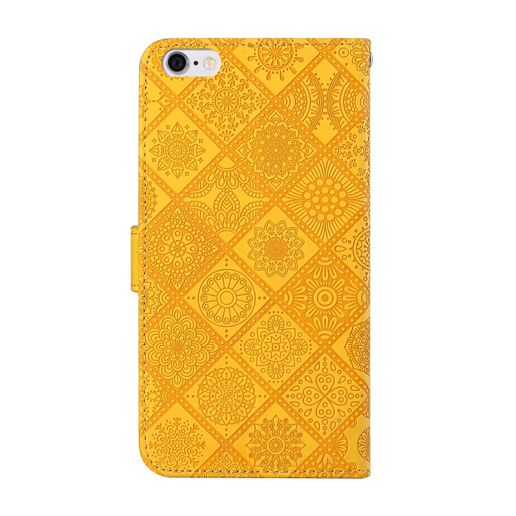 Estuche de Cuero iPhone 6 Plus Tapa Horizontal Patrón Étnico Soporte Ranuras Billetera Cordón (Amarillo)
