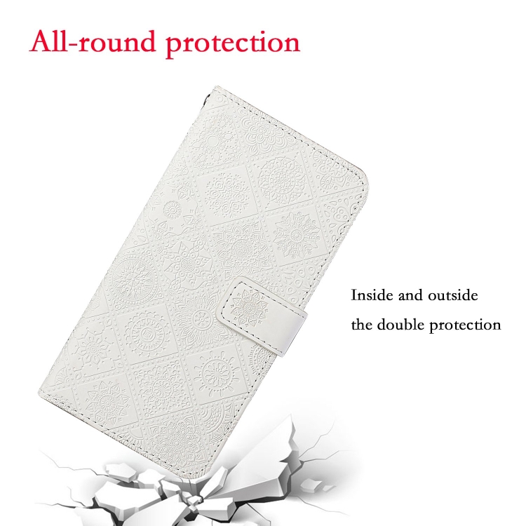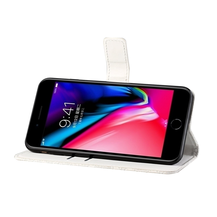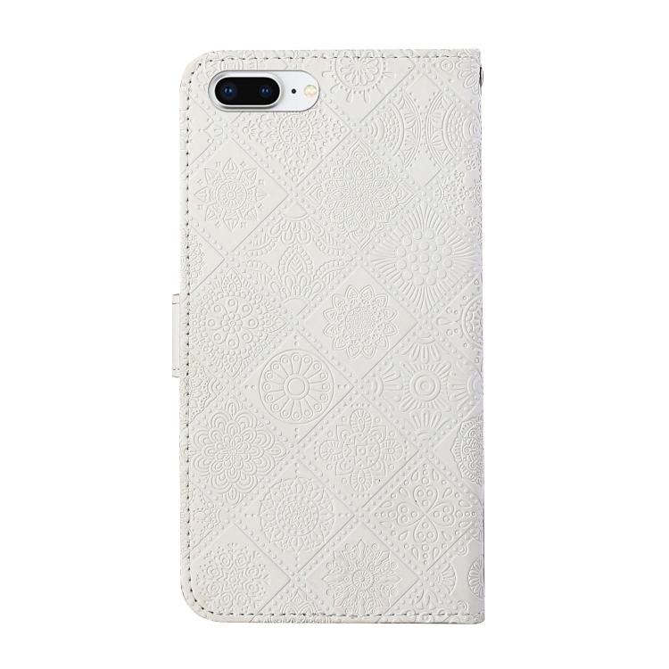 Estuche de Cuero iPhone 8 Plus 7 Plus Tapa Horizontal Patrón Étnico Soporte Ranuras Tarjetas Billetera Cordón (Blanco)