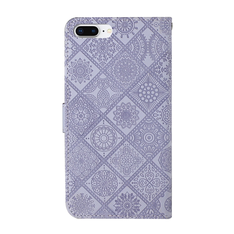 Estuche de Cuero iPhone 8 Plus 7 Plus Tapa Horizontal Patrón Étnico Soporte Ranuras Tarjetas Billetera Cordón (Morado)