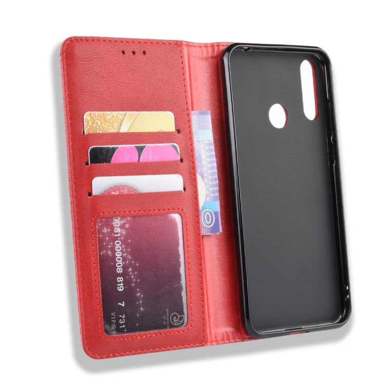 Estuche de Cuero con Tapa Horizontal y Hebilla Magnética para LG W30 con Soporte y Ranuras (Rojo)