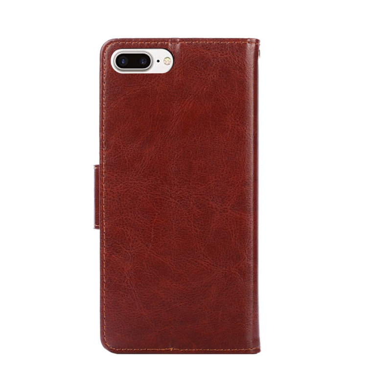 Estuche de Cuero Flip Horizontal Textura Cristal con Soporte y Billetera para iPhone 8 Plus y 7 Plus (Brown)