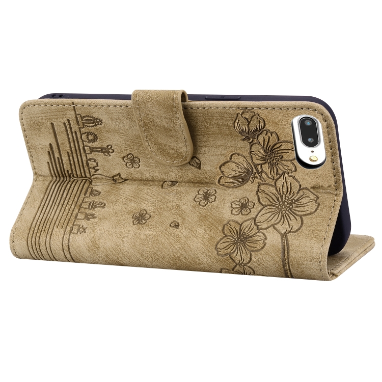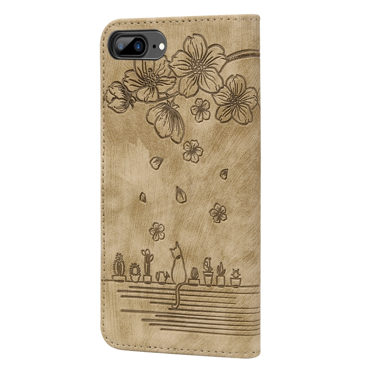 Estuche de Cuero Sakura Cat para iPhone 7 Plus y 8 Plus (Marrón)