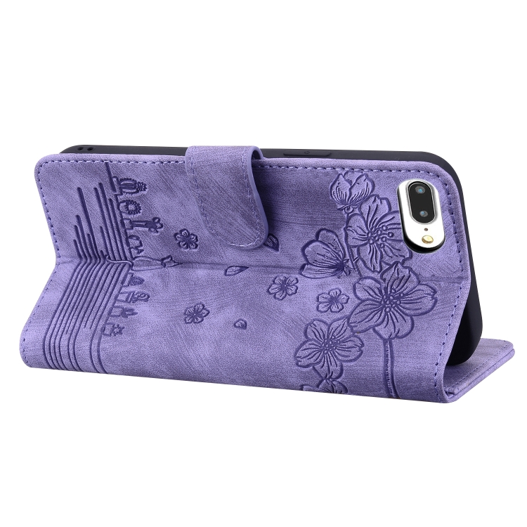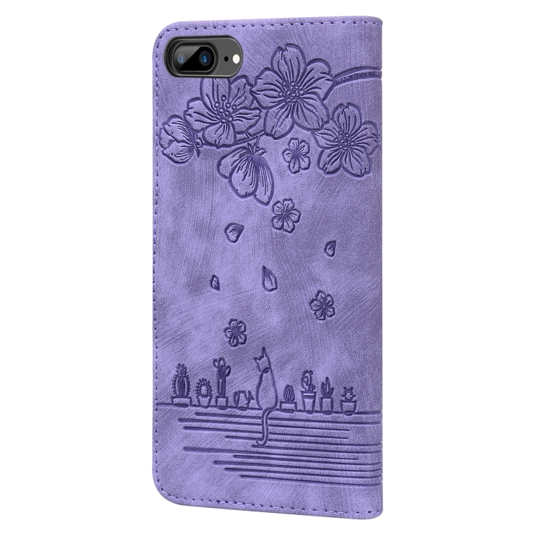 Estuche de Cuero En Relieve Dibujos Animados Sakura Cat para iPhone 7 Plus / 8 Plus (Púrpura)