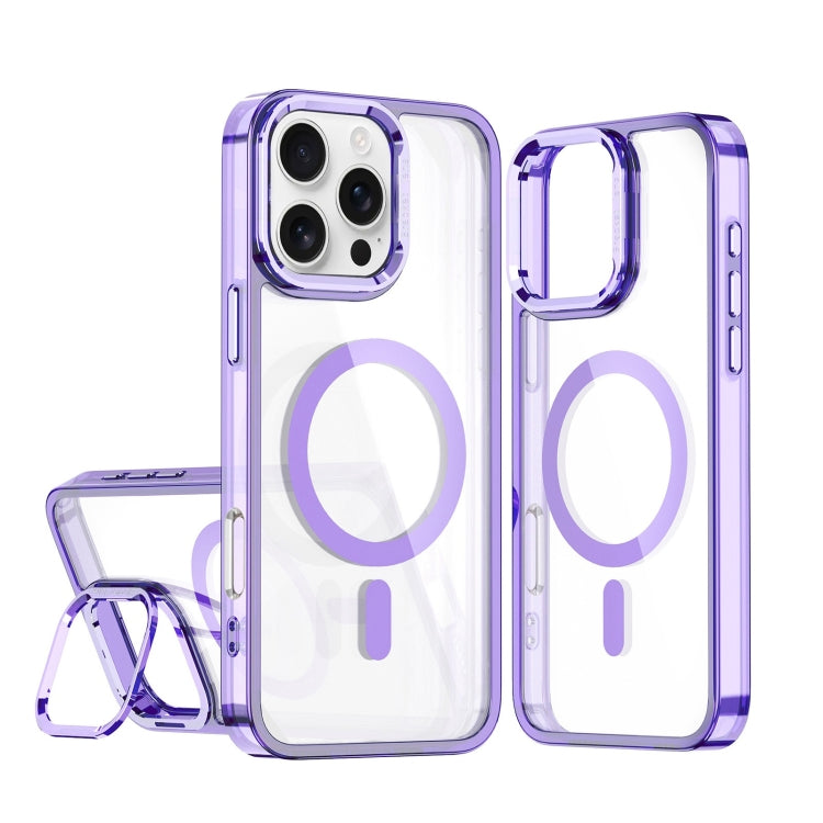 Estuche Magnético para Teléfono Magsafe con Soporte para Cámara de Acrílico para iPhone 16 Pro (Morado)