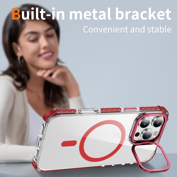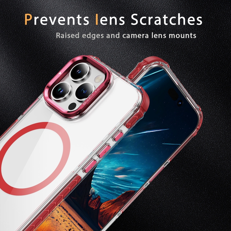 Estuche para Teléfono Rainbow para iPhone 16 Pro con Soporte para Lente Magsafe (Rojo)