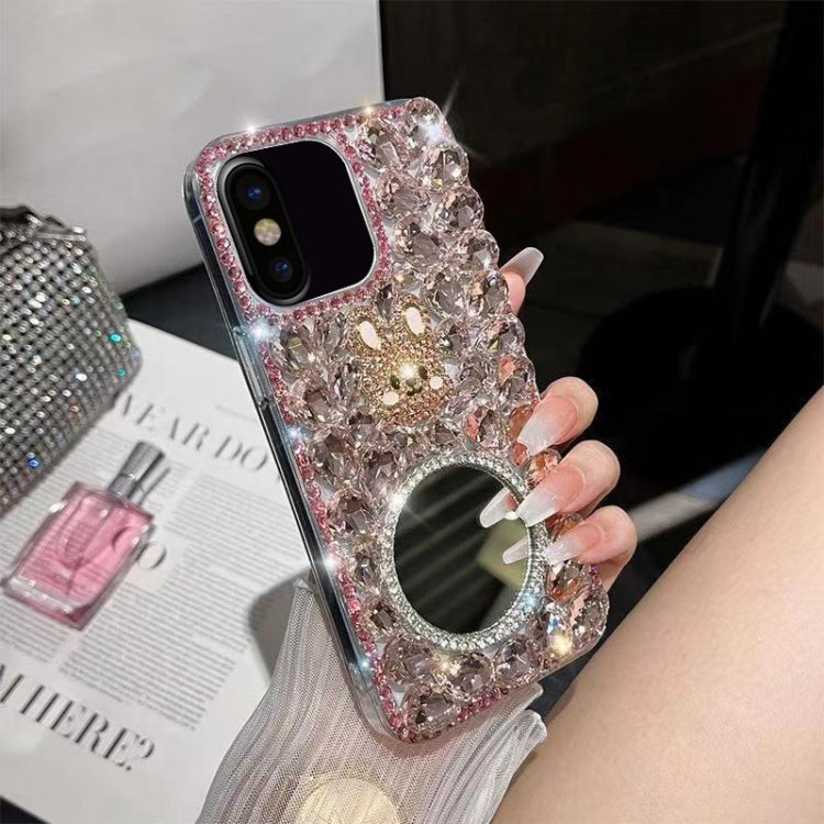 Estuche para Teléfono PC Hecho a Mano Forma Conejito con Espejo Diamante para iPhone X/Xs (Rosa)