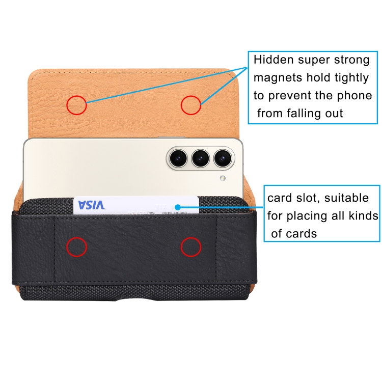 6. Material: tela con patrón de piel de vaca y tela Oxford de nailon. El material es ligeramente impermeable, lo que la convierte en una riñonera duradera y práctica.La ranura para tarjetas está diseñada para adaptarse a todo tipo de tarjetas, ¡lo que la hace muy cómoda de usar!El hijab tiene un imán oculto superfuerte para sujetar el teléfono con fuerza y evitar que se caiga;La hebilla del clip trasero se puede usar y recortar, lo que la hace muy cómoda de usar.