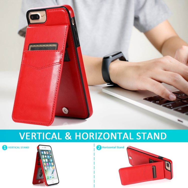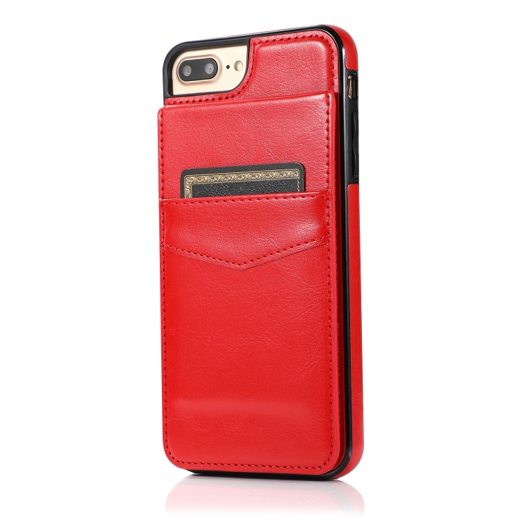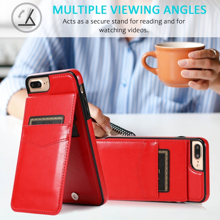 Estuche Protector PC + TPU para iPhone 8 Plus y 7 Plus con Soporte y Ranuras para Tarjetas (Rojo)
