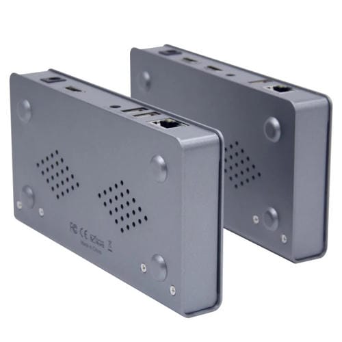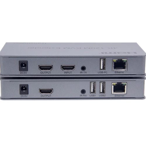 - 1x Extensor KVM 4K HD 120 m para ordenador con Ratón, Teclado, Cable Ethernet, HDMI, transmisor y receptor (Gris)