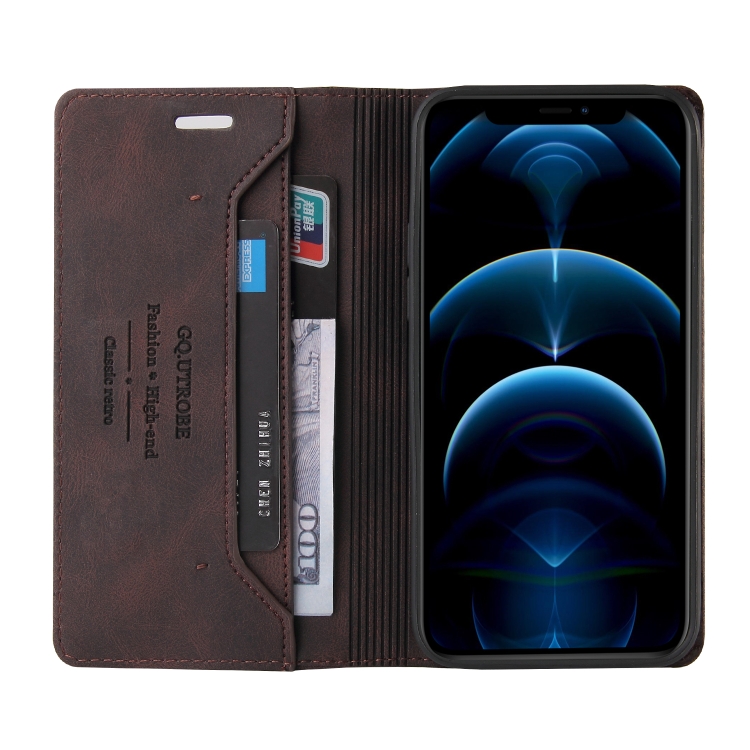 Funda de Cuero iPhone 11 Pro Anti-Robo Soporte Tragamonedas Billetera (Brown)