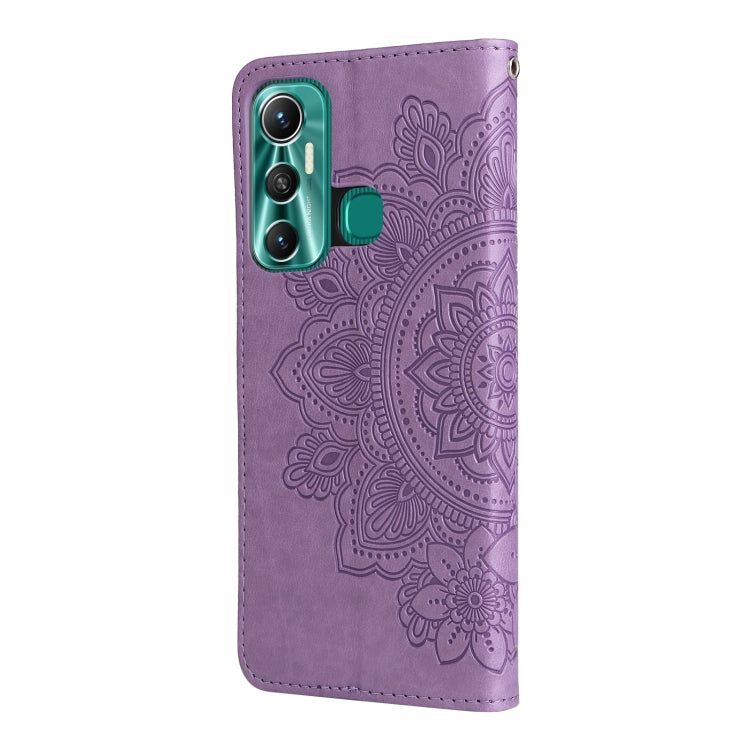 Funda Horizontal Flip de Cuero para Infinix Hot 11 con Relieve 7-Petal Flowers (Lila)