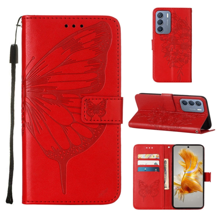 Estuche para Teléfono Forinfinix Zero 5G 2023 T781 Cuero con Mariposa En Relieve (Rojo)