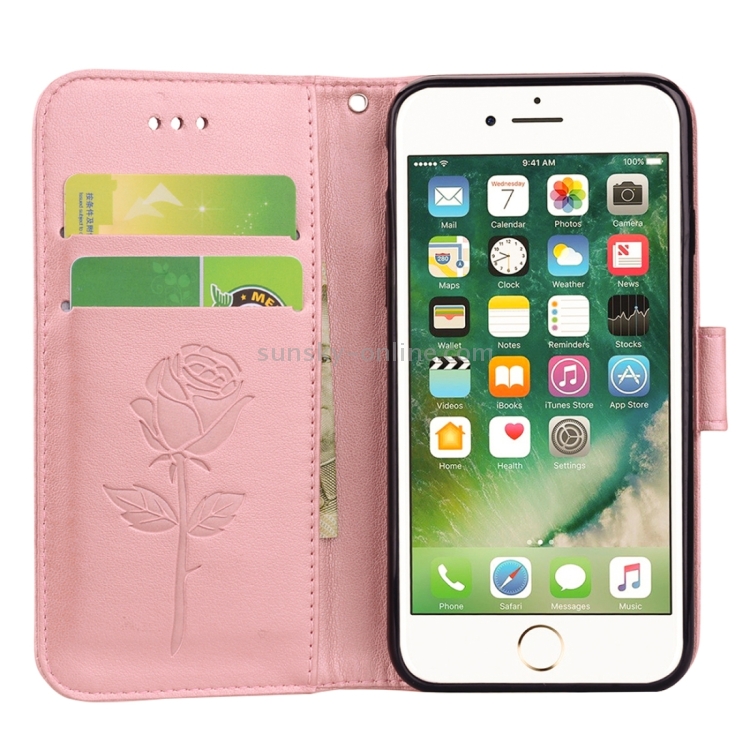 Funda de Cuero Fro iPhone 8 Plus y 7 Plus con Flores Prensadas, Soporte, Ranuras para Tarjetas y Billetera (Oro Rosa)