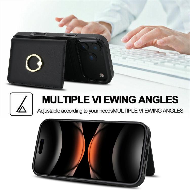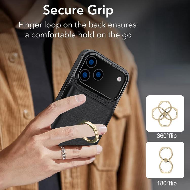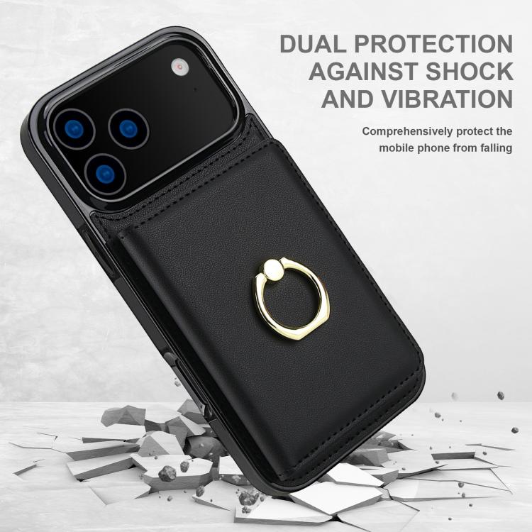 Funda antirrobo RFID para iPhone 17 Pro Max con anillo para tarjetas (negro)