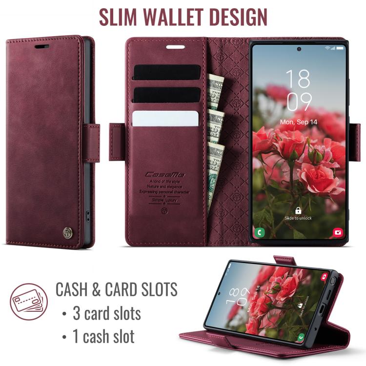 Funda CaseMe 033 para Samsung Galaxy Note10+, forro de piel de becerro, microfibra, con bloqueo RFID (roja)