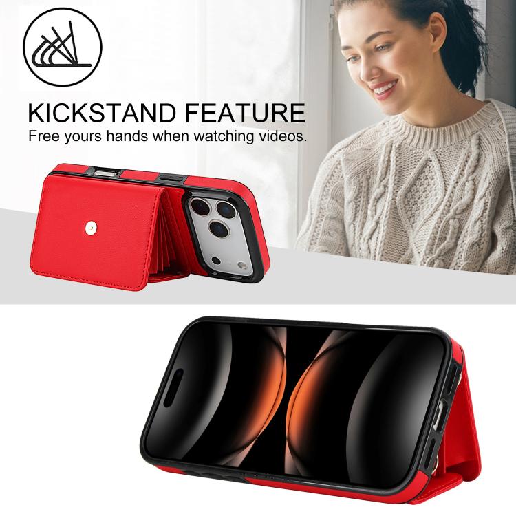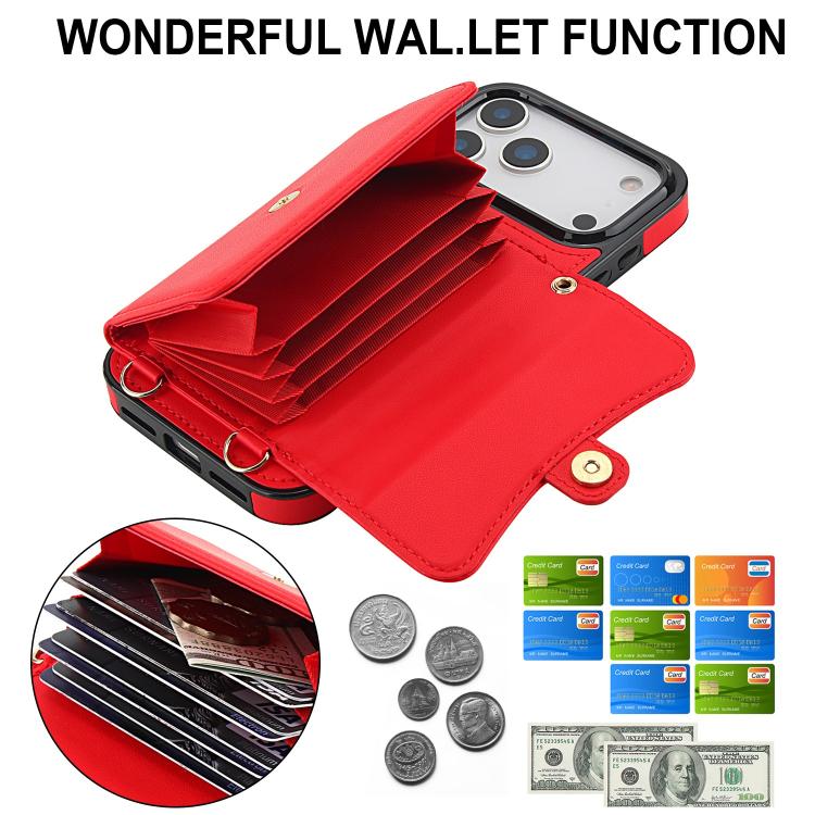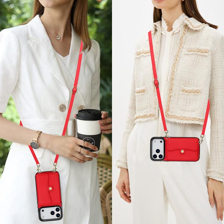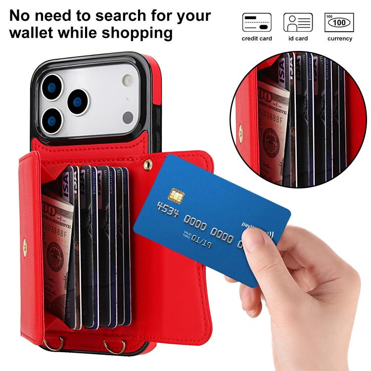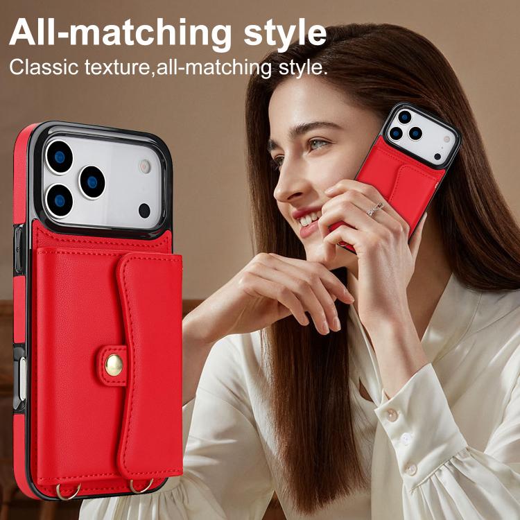 Funda con ranura para tarjeta RFID y cordón largo para iPhone 17 Pro Max (roja)