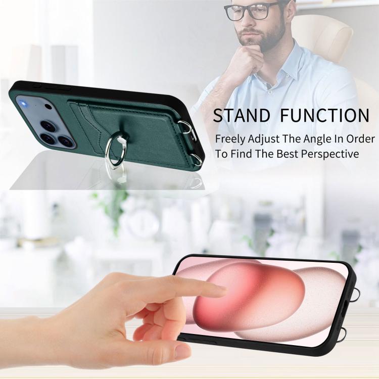 Funda con tarjetero y anillo para iPhone 17 Pro R20 (verde)