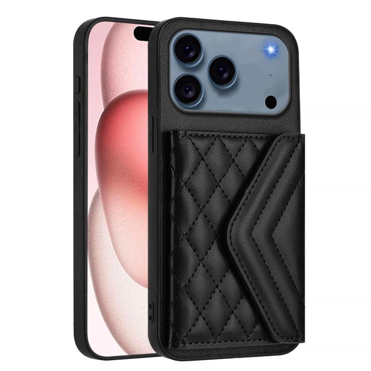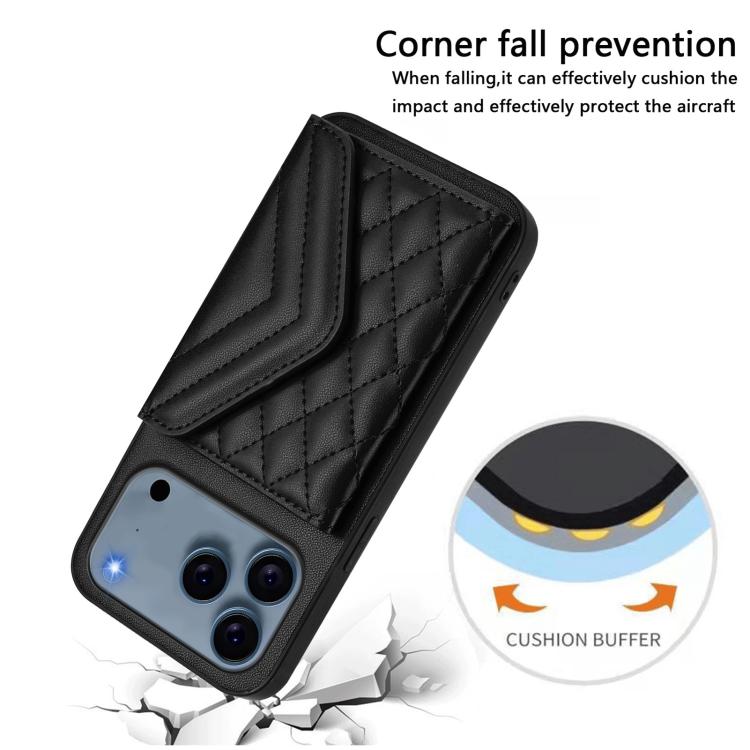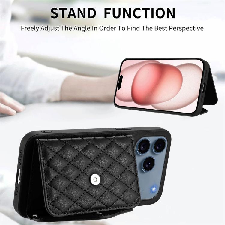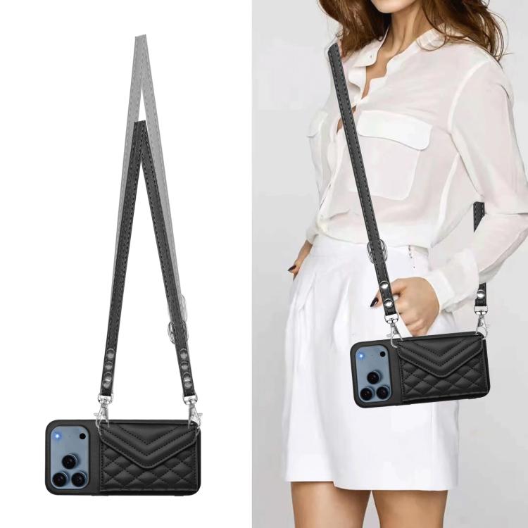 Funda con textura rómbica para iPhone 17 Pro, con RFID y cordón largo (negra)