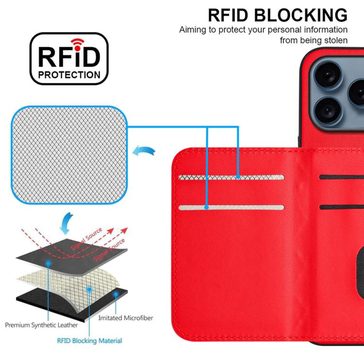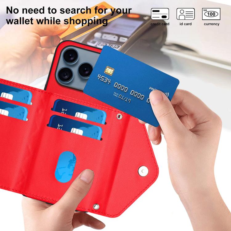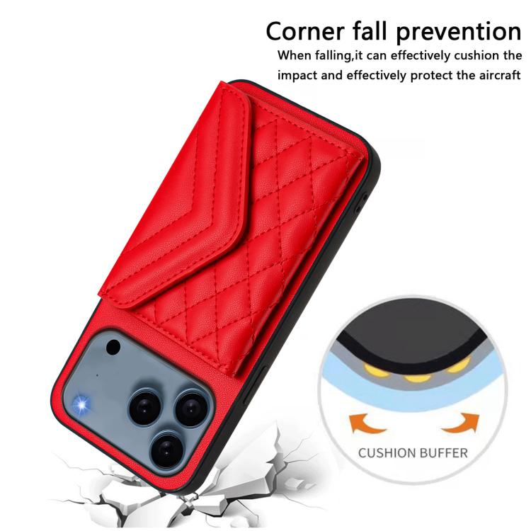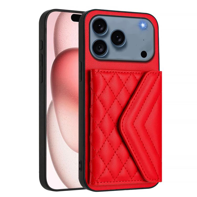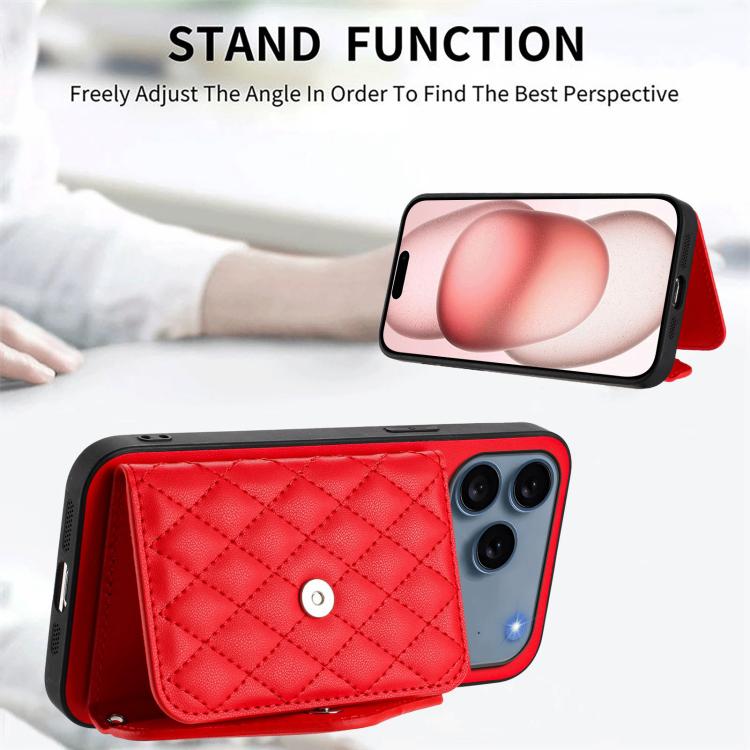 Funda con textura rómbica para iPhone 17 Pro Max, con RFID y cordón largo (roja)