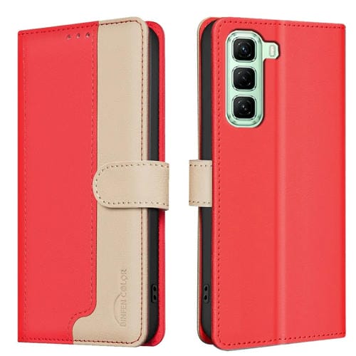 Funda de Cuero Antirrobo con Protección RFID para Infinix Hot 50 4G (Rojo)