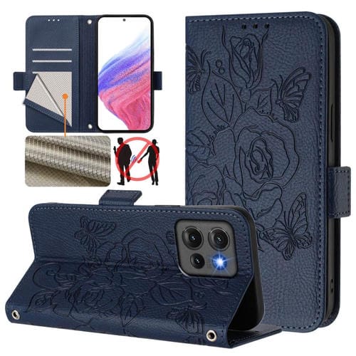 Funda de Cuero Antirrobo con Rfid para Motorola Edge 50 5G con Relieve Global (Azul Oscuro)