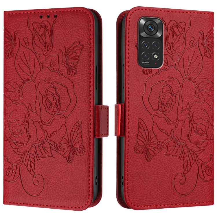 Funda de Cuero Antirrobo con Rfid para Redmi Note 11/11S/12S 4G con Relieve Global En Rosa (Rojo)