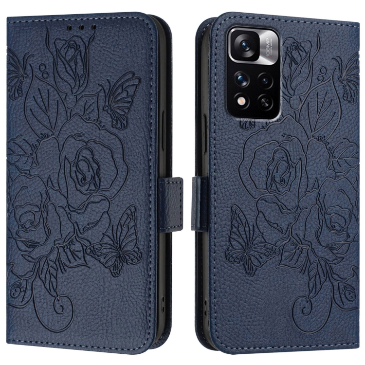 Funda de Cuero Antirrobo con Rfid para Redmi Note 11 Pro+ 5G / 12 Pro 4G con Relieve Global En Rosa (Azul Oscuro)