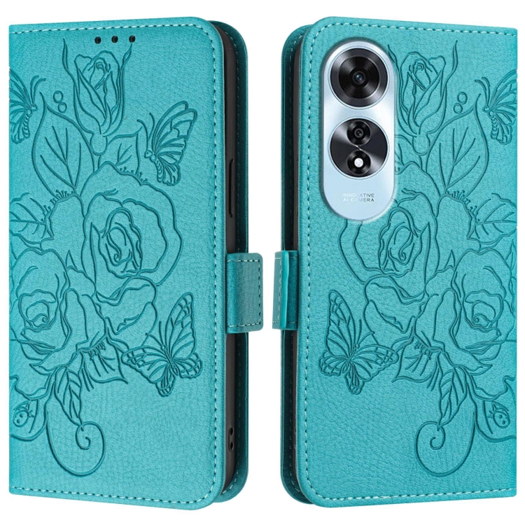 Funda de Cuero Antirrobo con Rfid y Diseño En Relieve para Oppo A60 4G (Azul Claro)