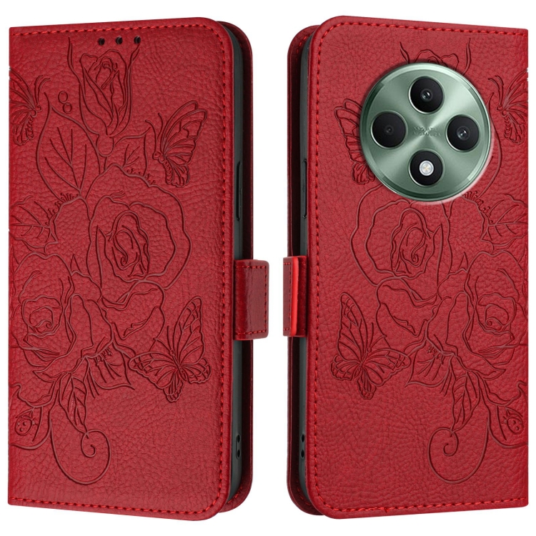 Funda de Cuero Antirrobo con Rfid y Diseño En Relieve para Oppo Reno 12F (Rojo)