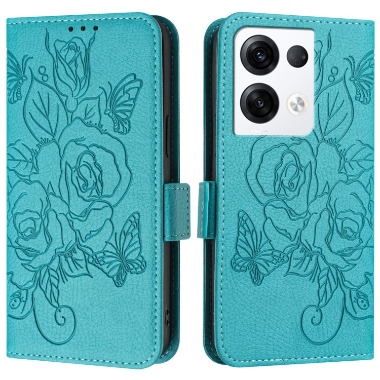 Funda de Cuero Antirrobo con Rfid y Diseño En Relieve para Oppo Reno8 Pro 5G (Azul Claro)