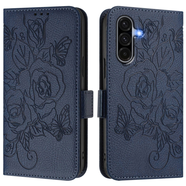 Funda de Cuero Antirrobo con Rfid y Diseño en Relieve para Samsung Galaxy A36 5G (Azul Oscuro)