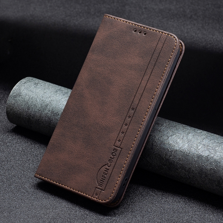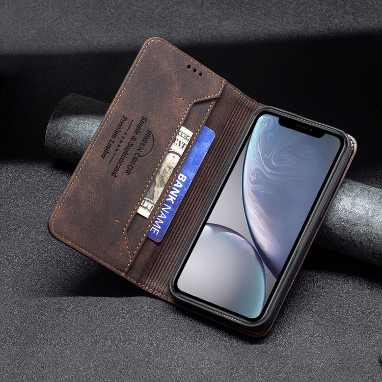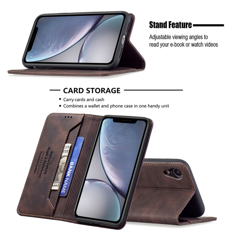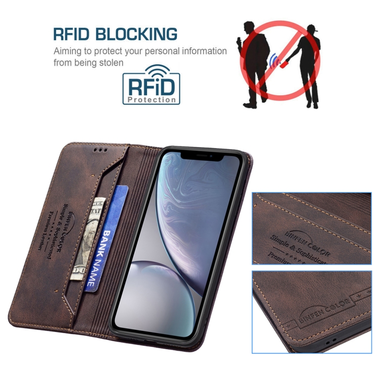 Funda de Cuero Antirrobo Bloqueo Rfid Magnético con Soporte y Ranuras para Tarjeta y Billetera para iPhone Xr (Brown)