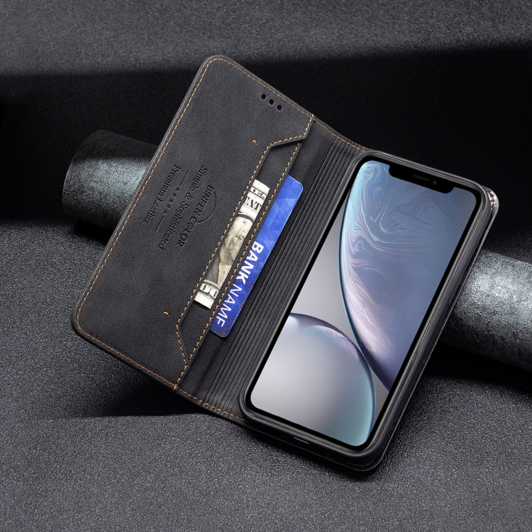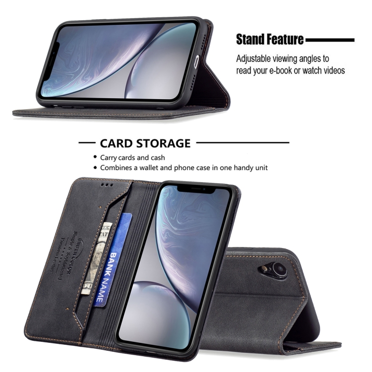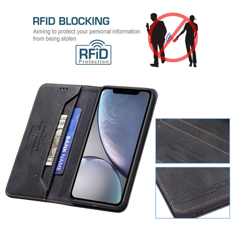 Funda de Cuero Antirrobo Bloqueo Rfid Magnético Soporte Ranuras Tarjeta Billetera iPhone Xr (Negro)