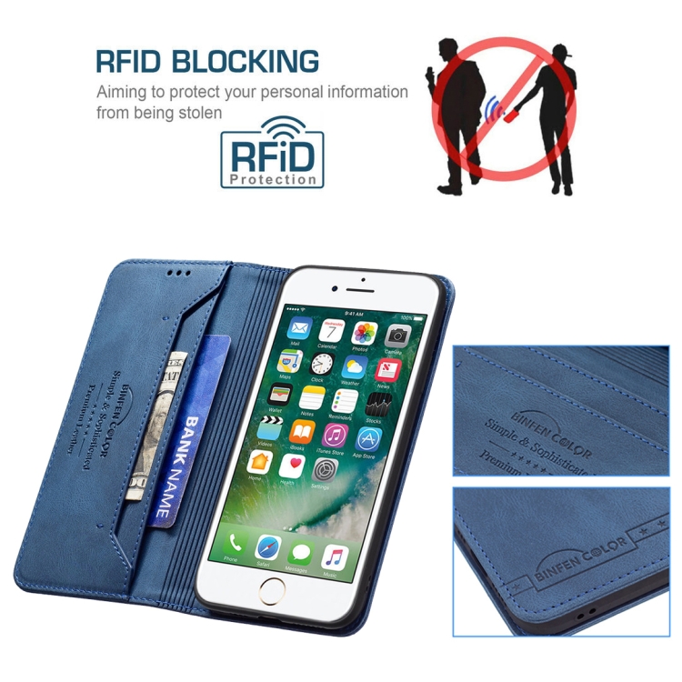 Funda de Cuero Antirrobo Bloqueo Rfid Magnético con Soporte y Billetera para iPhone 7 Plus / 8 Plus (Azul)
