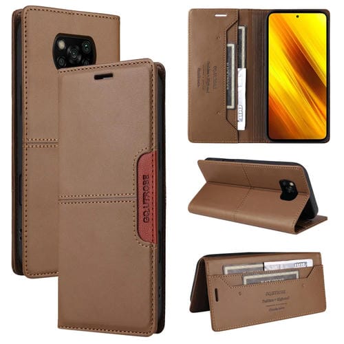 Funda de Cuero Antirrobo para Teléfono Xiaomi Poco X3 Nfc Gqutrobe G01 Rfid (Marrón)