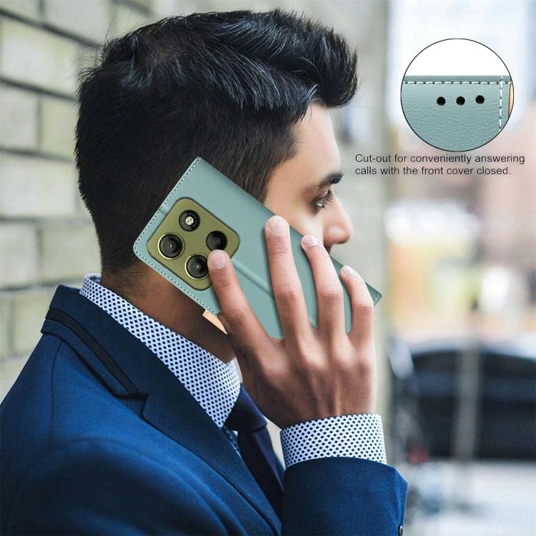 Funda de Cuero Antirrobo Rfid para Motorola Moto G15 (Verde)