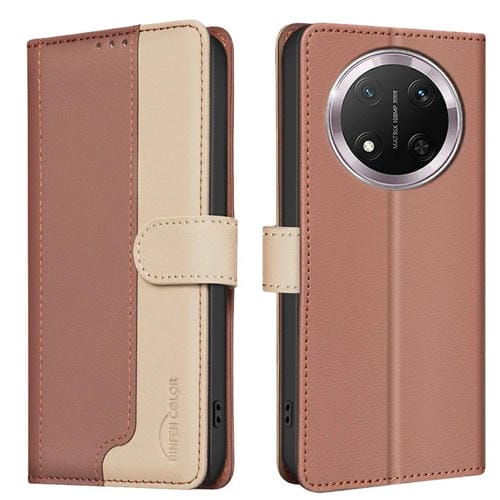 Funda de Cuero Antirrobo RFID para Honor X9C 5G (Marrón) con Combinación de Colores Global